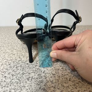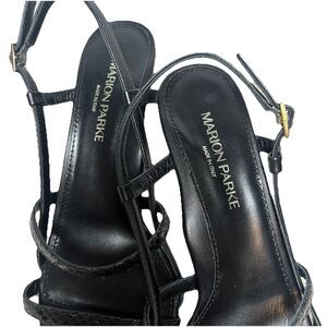 MARION PARKE Mitzi 70 Black Nappa Python Sandal Double Strap Slingback Sz 5.5/ eu 36