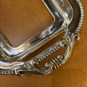 Beautiful decorative pewter stand that holds any rectangular glass/pyrex casserole dish that fits the inside measurements.