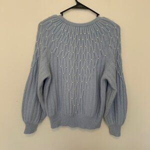 MARISA CHRISTINA BEAUTIFUL LIGHT BLUE LAMBSWOOLSWEATER W/WHITE BEADS SIZE SMALL