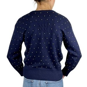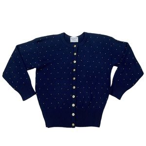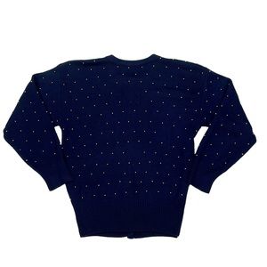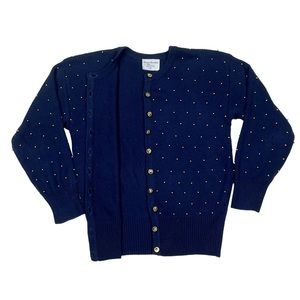 MARISA CHRISTINA VINTAGE COTTON NAVY GOLD STAR POLKA DOT BEADED CARDIGAN SWEATER