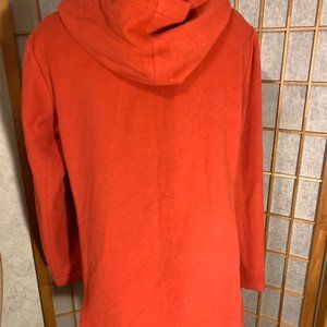 Look stylish and stay warm in this red button front hooded coat by MARISA MINICUCCI, size 10. Featuring a mid-length cut, long sleeves, and a button front closure, this jacket is perfect for travel, casual outings, workwear, or business settings. This jacket is made in Canada with the finest materials and lined with acetate for added comfort. It is ideal for the fall and winter seasons, keeping you cozy and fashionable. The coat is made of 78% virgin wool, 15% nylon, 7% angora. The measurements for the coat are: bust 38", sleeves 24", waist 40", hem 44", length 29". This coat is pre-owned in fabulous condition!