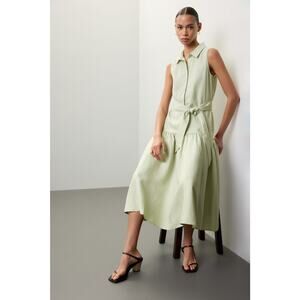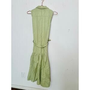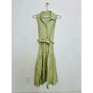 MARISSA WEBB Light Green Linen Blend Front Button Tie Waist Midi Dress Size XS