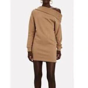 MARISSA WEBB One-Shoulder Mini Sweatshirt Dress Light Mocha