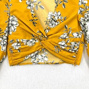 MARISSA WEBB Shirt Womens XS Yellow Karlee Cropped Twist Top Long Sleeve Floral