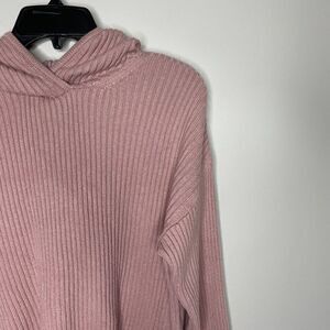 Pink ribbed Arie hooded pullover sweater