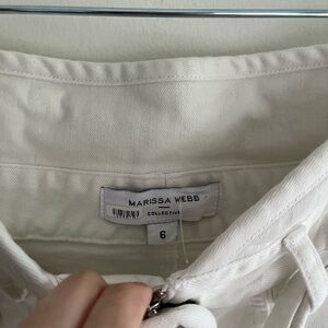 Your standard white pants just got so much cuter with this tulip-waisted cargo pair by Marissa Webb Collective.