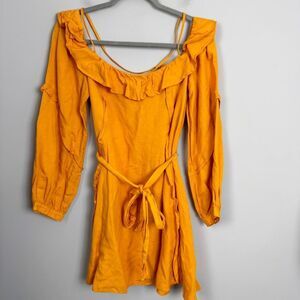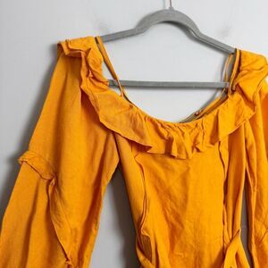 MARISSA WEBB | Orange Off the Shoulder Belted Linen Blend Dress Women’s Size 6