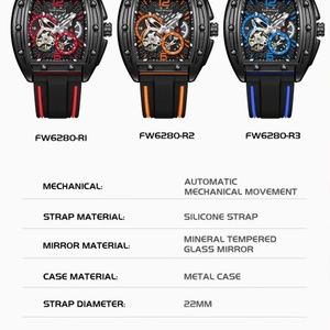 MARK FAIRWHALE Tonneau Waterproof Luminous Tourbillon Automatic Mechanical Watch