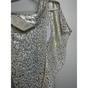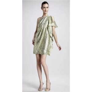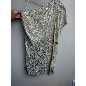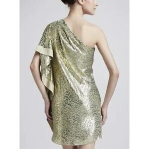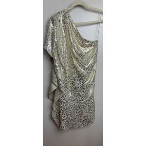 MARK & James Badgley Mischka Gold Silk One Shoulder Brocade Caftan Dress Sz. S