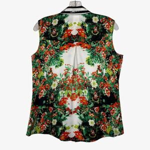 MARK M Button Down Floral Print Sleeveless Blouse Size Medium Black Red Green