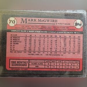 MARK MCGWIRE 1989 TOPPS #70 ERROR CARD