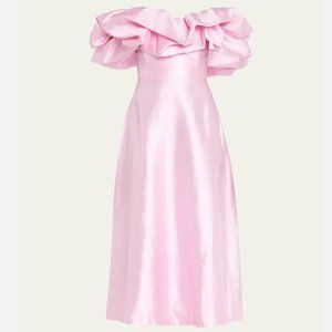 MARKARIAN Off-the-Shoulder Ruffle-Trim Silk Midi Dress-- Bergdorf Exclusive