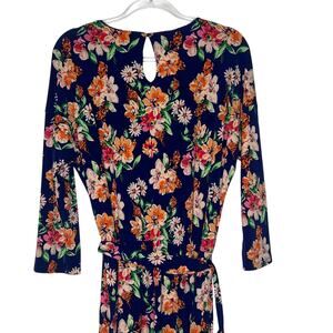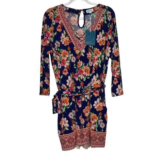 MARKET & SPRUCE Floral Romper 3/4 Sleeve V-Neck Tie Waist Blue Mutli Size L NWT