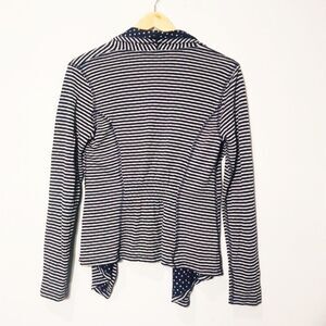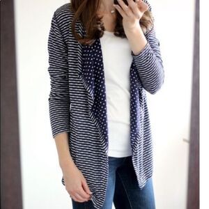 Stitch Fix draped front polka dot & striped mixed media open front cardigan lightweight sweater. Color: navy blue & white