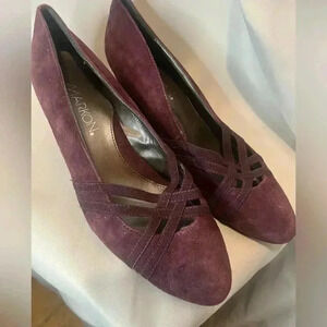 MARKON Quarry Purple Suede Leather Wedge Heels Shoes 7W