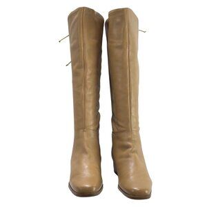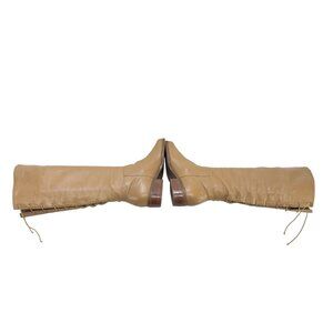 MARKON Women's Tan Leather Knee-High Boots Lace-Up Back Low Heel Size