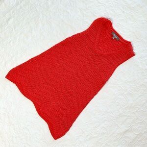 Great transitional top, lightweight knit, perfect to dress up or down - great red color with scalloped hem.