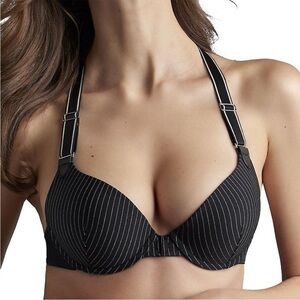 MARLIES DEKKERS Gloria Suspender Pinstripe Padded Push Up Halter Bra 34B NWOT!