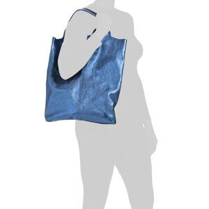 MARLON Blue Made In Italy Leather Row Cut Slouchy Hobo Metallic