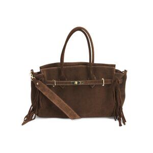MARLON Chocolate Made In Italy Suede Large Franges East West Tote