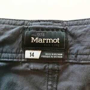 Marmot convertible hiking pants. Gray, button & zip fly, 4 pocket, buttons to hold rolled up hems, size womens 14, cotton nylon elastane blend, some wash wear to fabric. Measurements in photos. Smoke and pet free home.