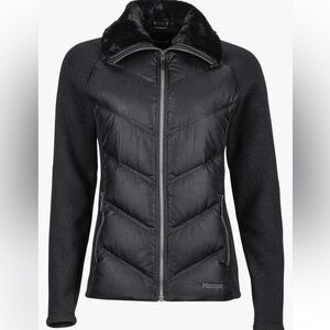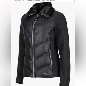 MARMOT Thea Jacket Down Insulated Hybrid with Fleece Sleeves Faux Fur Collar, XS