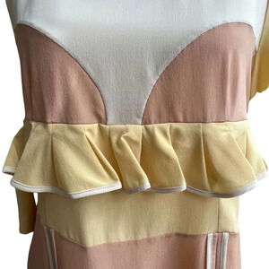MARNI Antique Rose + Vanilla 100% Silk Midi Length Ruffled Peplum Dress Size 8