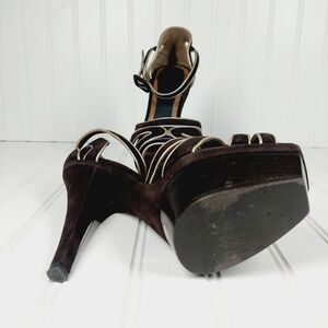 MARNI BROWN LEATHER PLATFORM ANKLE STRAP SANDALS D161