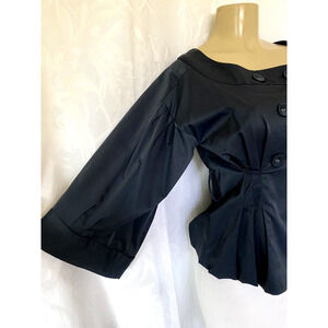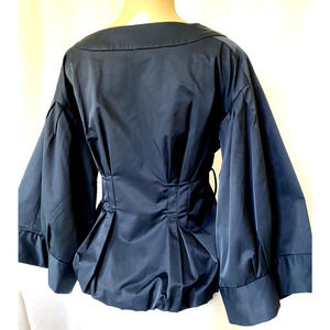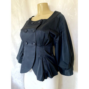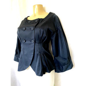 MARNI Blazer Jacket Peplum Navy Bell Balloon 3/4 Sleeve Double Breasted …