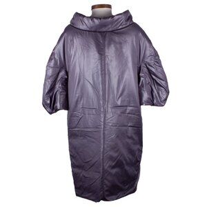 MARNI Gunmetal Silver Silk 3/4 Sleeve Puffer Coat