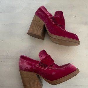 MARNI Pink Velvet Moccasin Loafers Chunky Block High Heels Sz 37