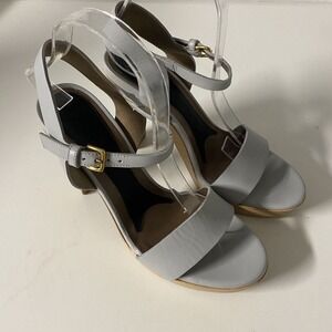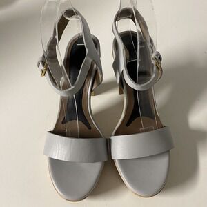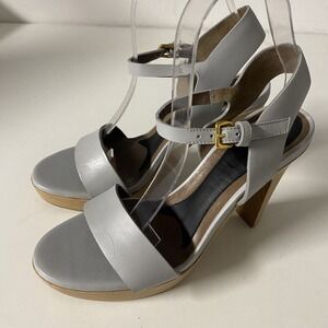 MARNI Sandal Leather Open Toe Platform Ankle Strap Wood Heel Grayish Blu…