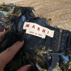 MARNI Silk Printed Polka Dot Fringe Runway Shift
