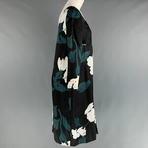 MARNI Size 6 Black Green Viscose Abstract floral 3/4 Sleeves Dress