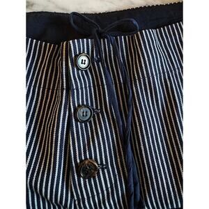 Marni striped denim pants with skinny lace tie detail. In great condition overall, with a faint mark near the crotch area (shown in photos).