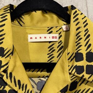 Marni x Uniqlo Oversized Open Collar Short-Sleeve Shirt in size XS. New with tags! Features a relaxed, boxy fit with a chest measurement of approx. 41” and length of 22”. Designed with a stylish open collar and bold, modern aesthetic—perfect for adding a designer touch to your wardrobe.
