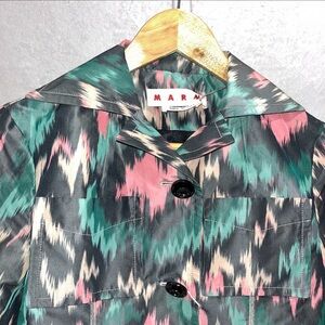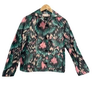 MARNI jacket coat printed ikat size IT 38 US 2 XS green pink white buttons NWT