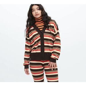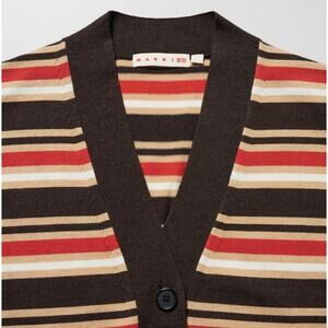 NWT MARNI x Uniqlo Merino Wool Blend Striped Oversized Cardigan in Dark Brown