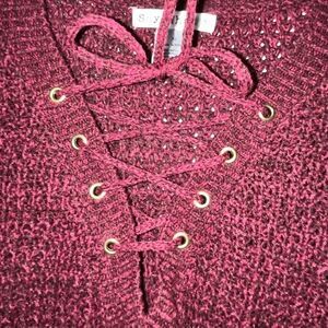 Women’s Maroon qtr lace up sweater. Size XL new without tag’s