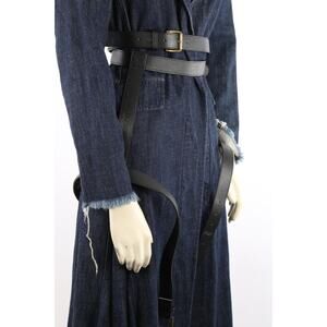 MARQUES ALMEIDA Navy Denim Collared Belted Long Trench Coat Size XS