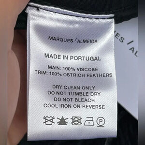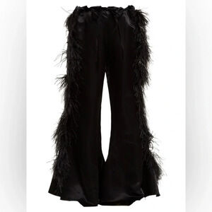 Made of genuine ostrich feathers, exaggerated flare frayed style, have pockets and stretch waistband in back of pants. Sold out . no longer sold online