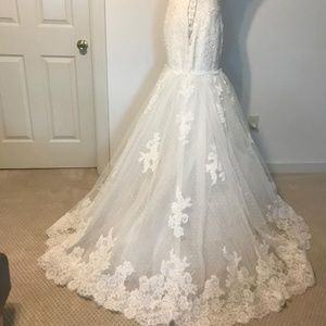 beautiful beaded top low waist gown color ivory - dotted swiss lace, corset back, beautiful lace all around bottom hem see photo (bridal sash not included)