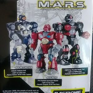 M.A.R.S. Motorized attack robo squad Electronic walking robot with pulsing light - up eye unit.. Multi- Articulated arms