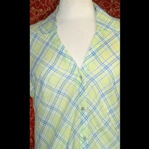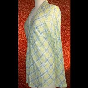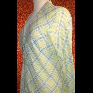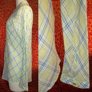 Excellent Condition: Looks barely worn. Sheer,thin cotton. Textured stripes. Square mother-of-pearl buttons. Single button cuffs.