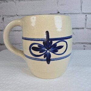 MARSHALL POTTERY "DON" MUG NATURAL STONE COLOR WITH BLUE GLAZE ACCENT