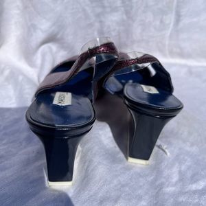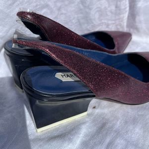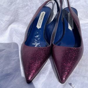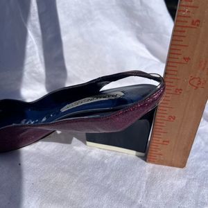 Gorgeous wine colored glittery pumps with rectangle heel. Gorgeous leather sole. Excellent condition. Slight wear. Size 37.
