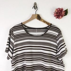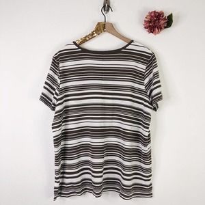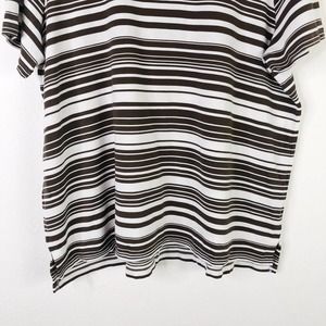 MARTHA STEWART Women's Tunic Top Ponte Knit Short Sleeve Stripe Brown White XL
