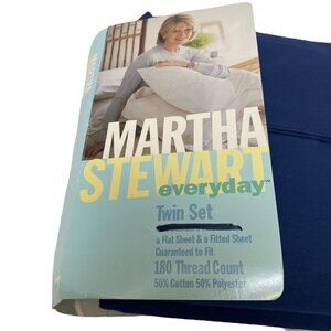 MARTHA STEWART Twin Bed Sheets Blue Flat + Fitted Cotton Blend No Pillowcases