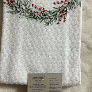 MARTHA STEWART White Gold Red Wreath Green Cotton Kitchen 3 Towel Gift Set