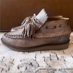 MARTHA STEWART X AEROSOLES Shirley Bronze Metallic Leather Tassle Moccasins 8.5